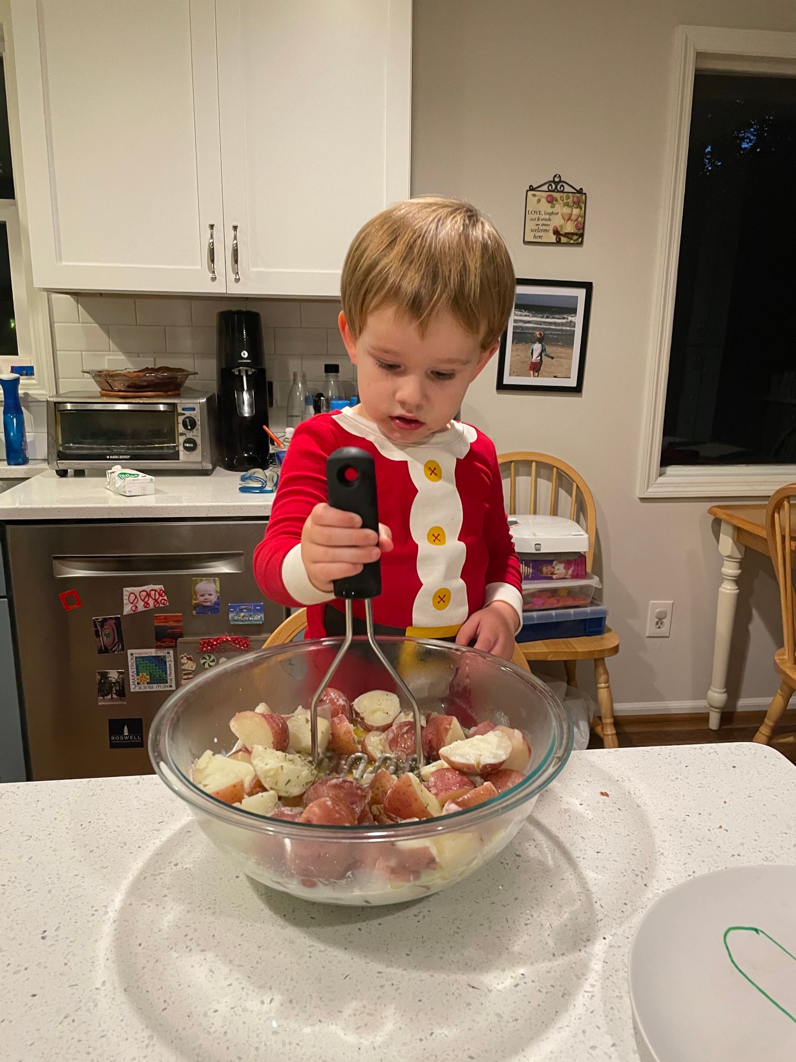 For snacks, a few vegan options that are a hit are pretzels, veggie straws, and pumpkin seeds. We make sure to have at least one or two fruits/veggies at each meal, and some of their favorites are strawberries, apples, cuties mandarins, baby carrots, bananas, broccoli (roasted at 350 degrees for 12 minutes with a little olive oil, salt, and lemon juice), spinach (that’s Wessy’s new fave–he just eats pieces of it raw, with or without salad dressing), and craisins (if we can count that as a fruit). Willy sometimes enjoys vegan chicken options (like beyond chicken tenders or impossible nuggets), and Wessy likes tater tots. Willy loves sourdough bread, and Arnold’s is a good brand of vegan sourdough sandwich bread. Our friend Jessica made some cornbread that Willy loved, made from cornbread mix with oat milk and applesauce, so we’ve made that too.
